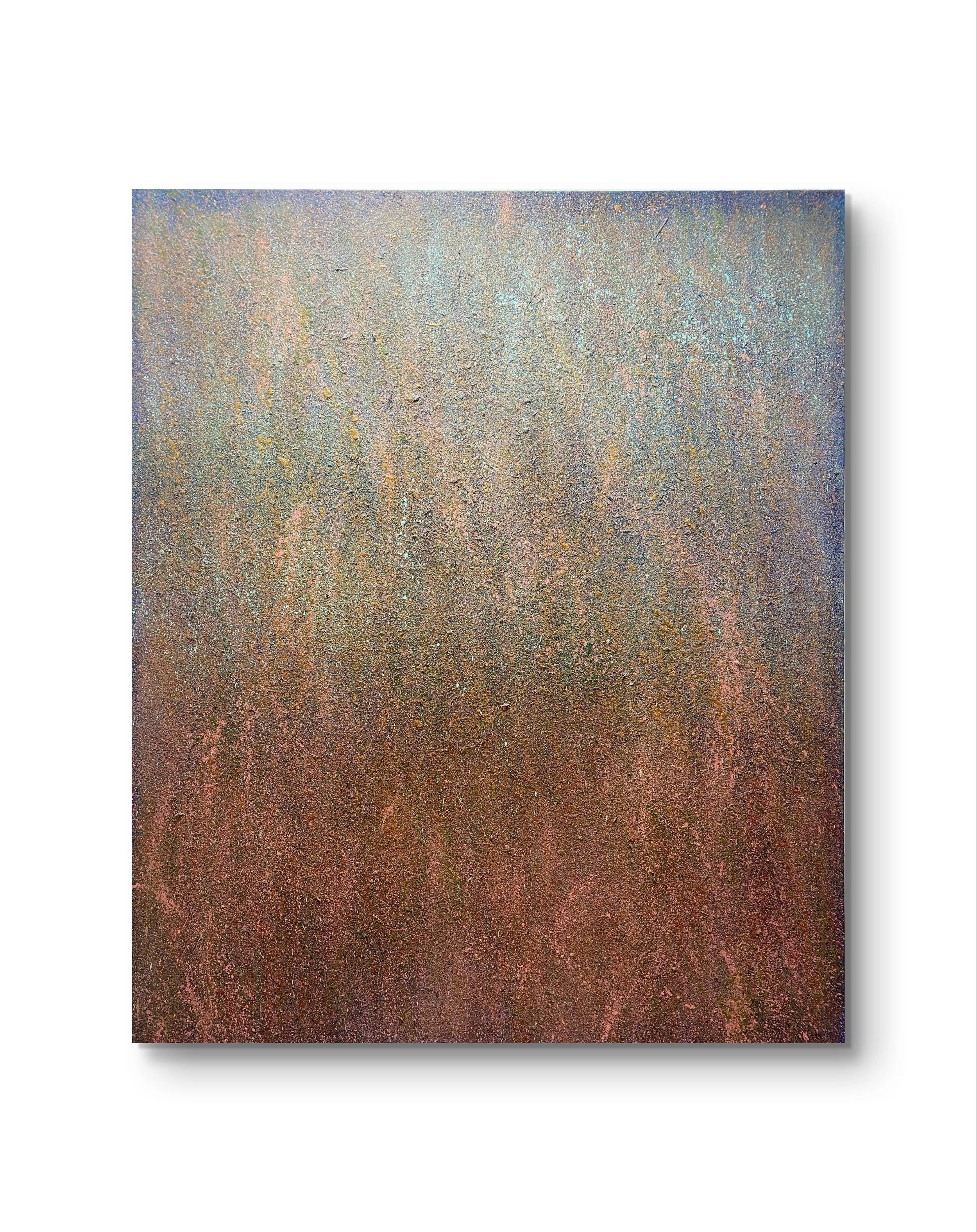 The mark-making is complex and ever-shifting—no two areas are alike, inviting the viewer to lose themselves in the work’s layered intricacy. An unexpected pastel drawing cuts across the canvas like a lifeline—risky, spontaneous, and ultimately transformative. What began as a private act of catharsis has become the artist’s most cherished piece to date.